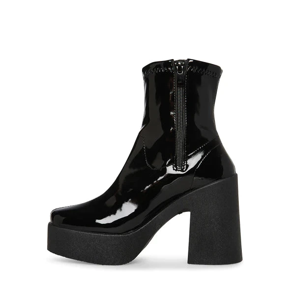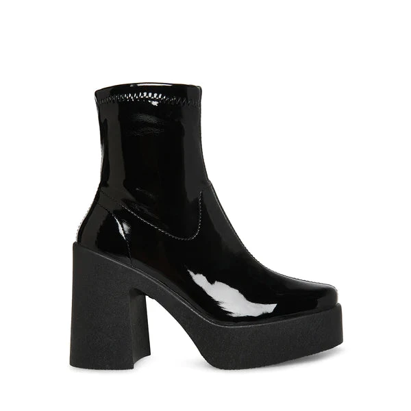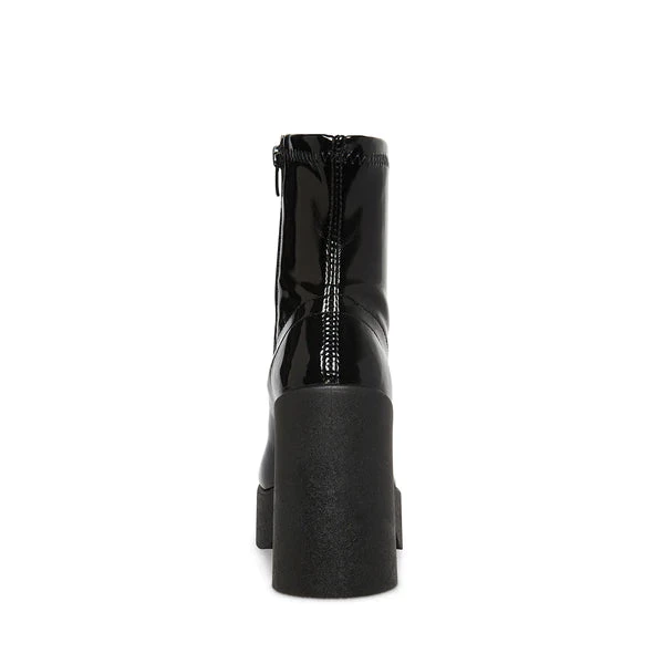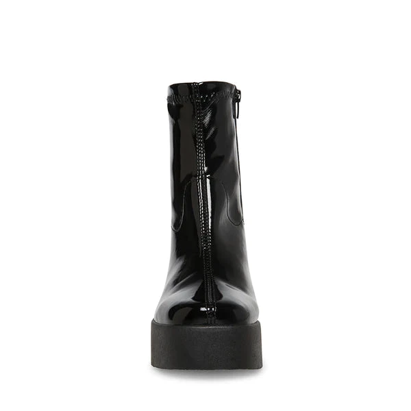 Get your hands on LANNAA! This glossy Chelsea boot features a chunky heel and a platform to accentuate height.
