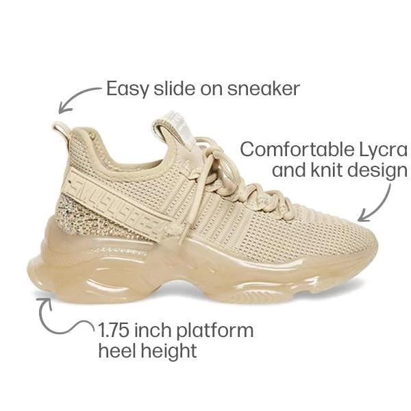 If you only rock one sneaker this season, make it MAXIMA. A super-sleek monochromatic colour palette unites this kick’s defining features, which range from a texture-blocked knit upper to an artfully sculpted sole and glitzy rhinestone embellishment.