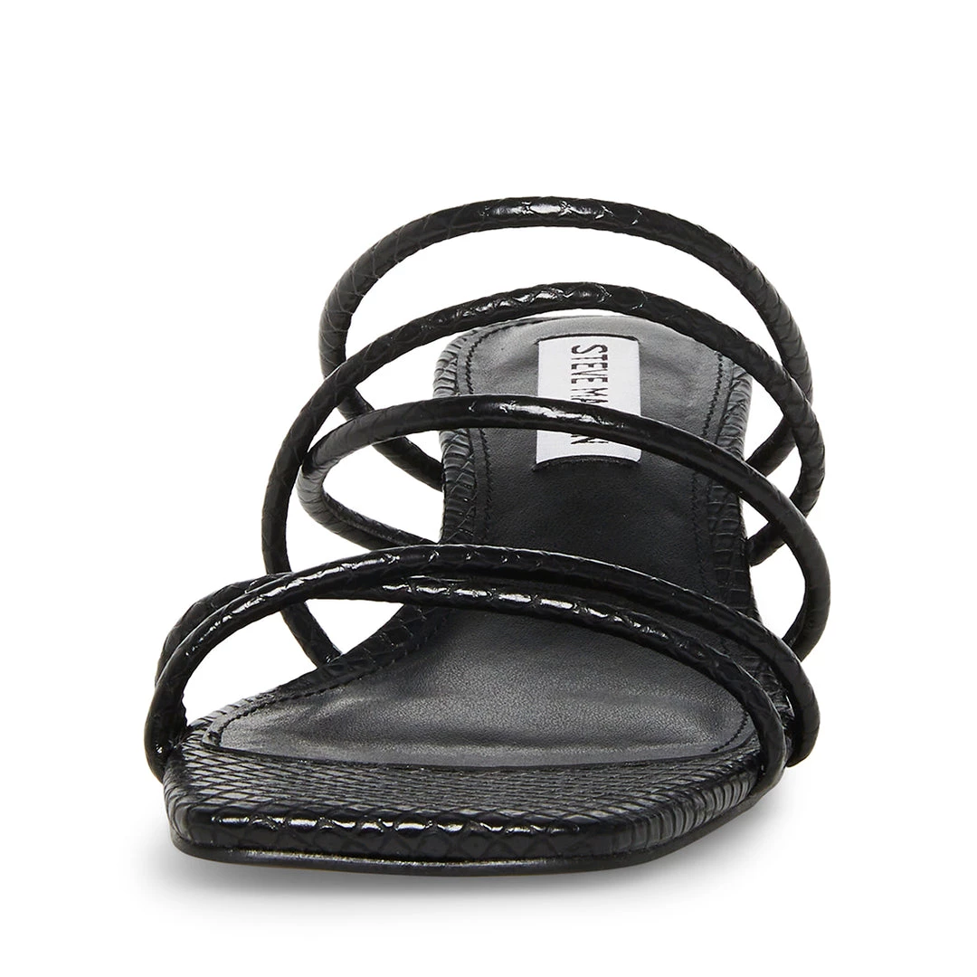 Complete any look for day or night with PAIGEE, a snake-embossed strappy sandal with a low block heel.