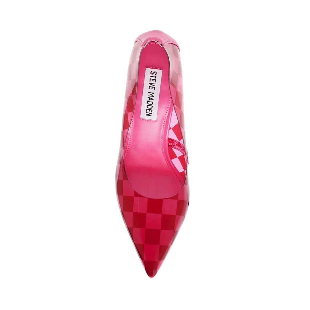 Strut your stuff in ATLANTA — a sexy stilettoed pump with a playful transparent checkered upper.