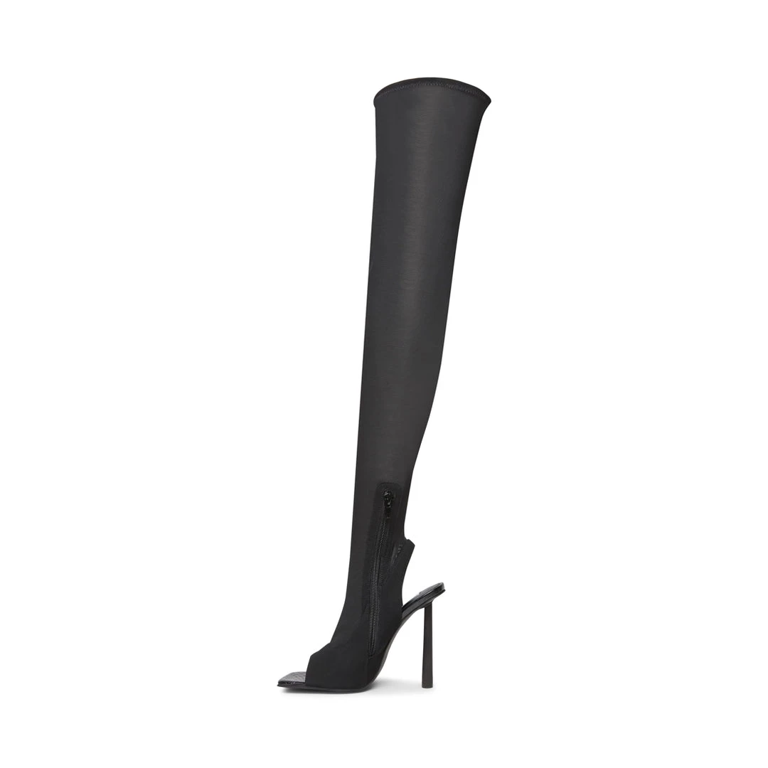 With an over-the-knee shaft, sky-high heel and open toe, the BEVERLEY boot delivers major drama. Pair with a fresh pedi and confidant stride.