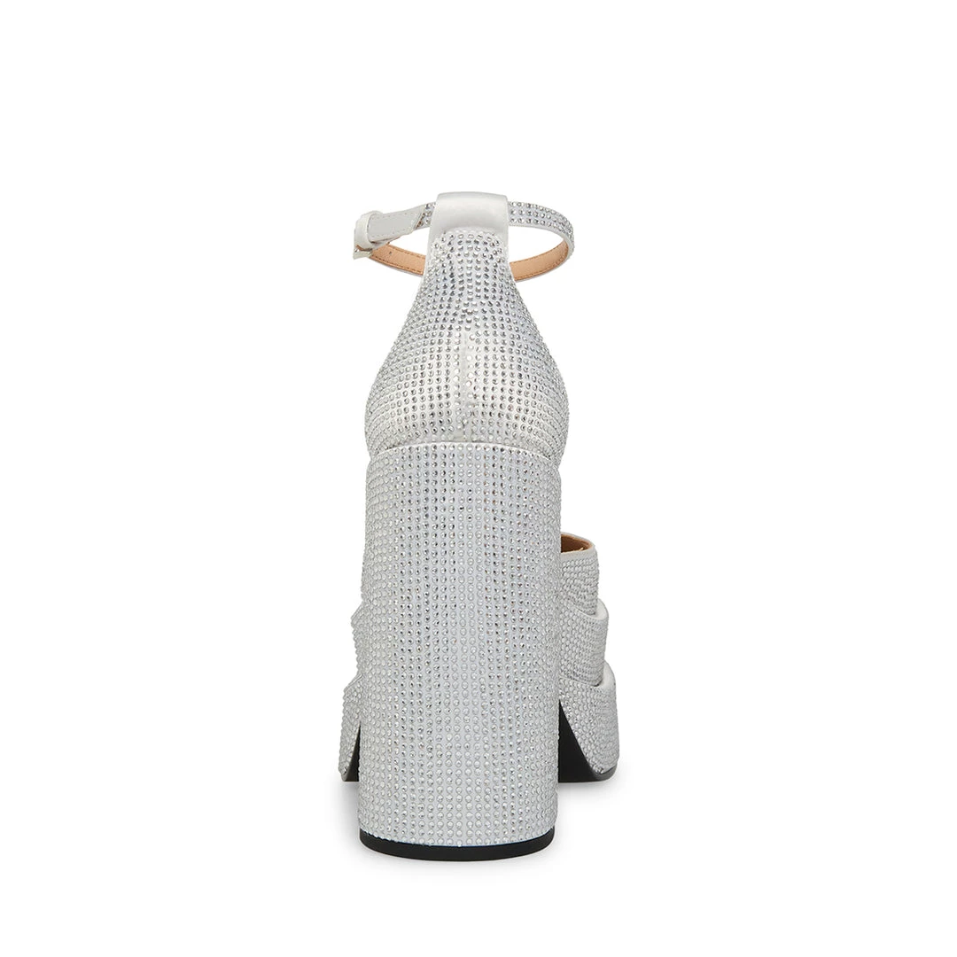 Demand attention when you walk into any room in CHARLIZE rhinestone heels. A chunky double platform and sky-high block heel define these sandals, sure to give you major disco queen vibes.