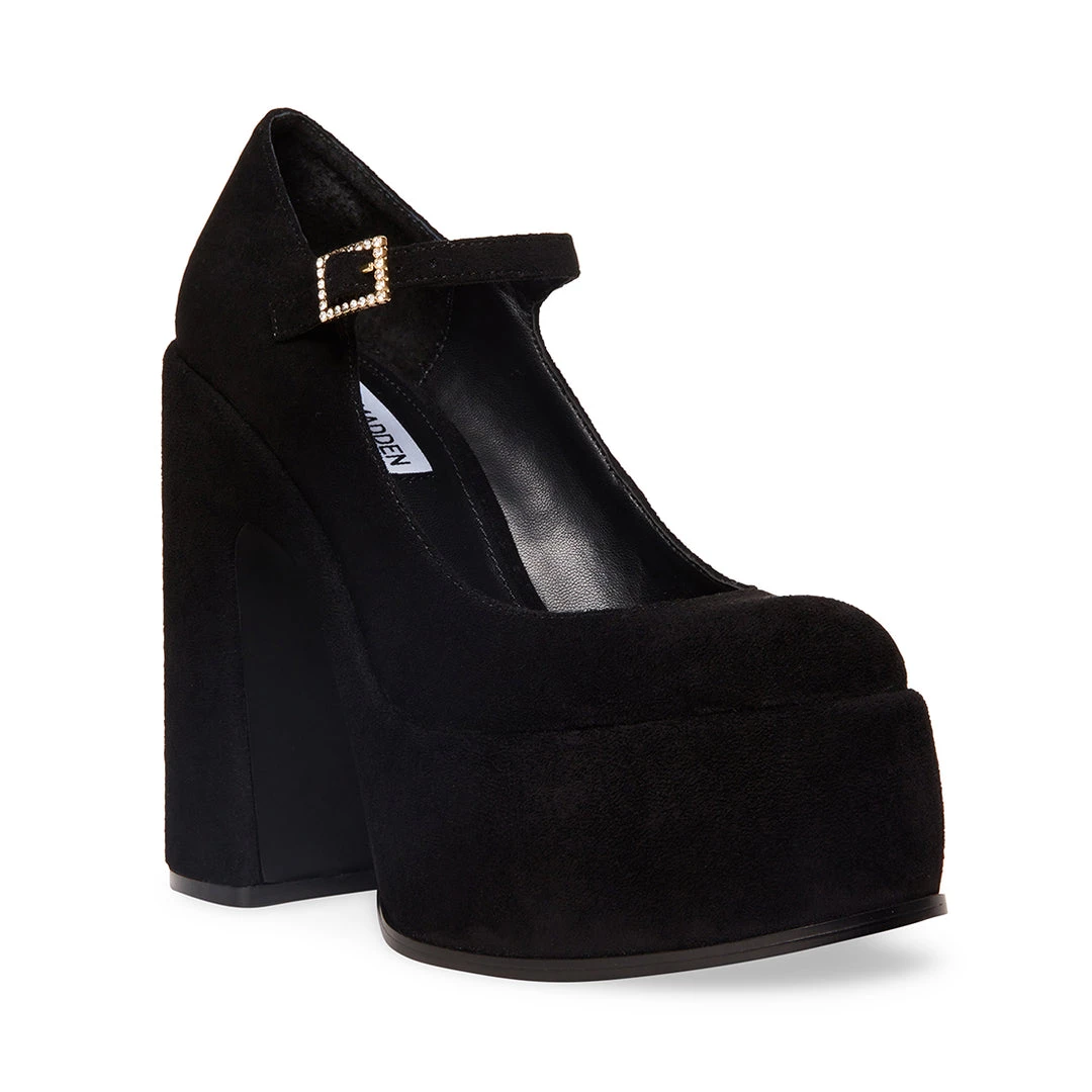 A tall, chunky heel and platform bring scene-stealing style to this Mary Jane pump that’s finished with the most perfect rhinestone-embellished ankle strap buckle.