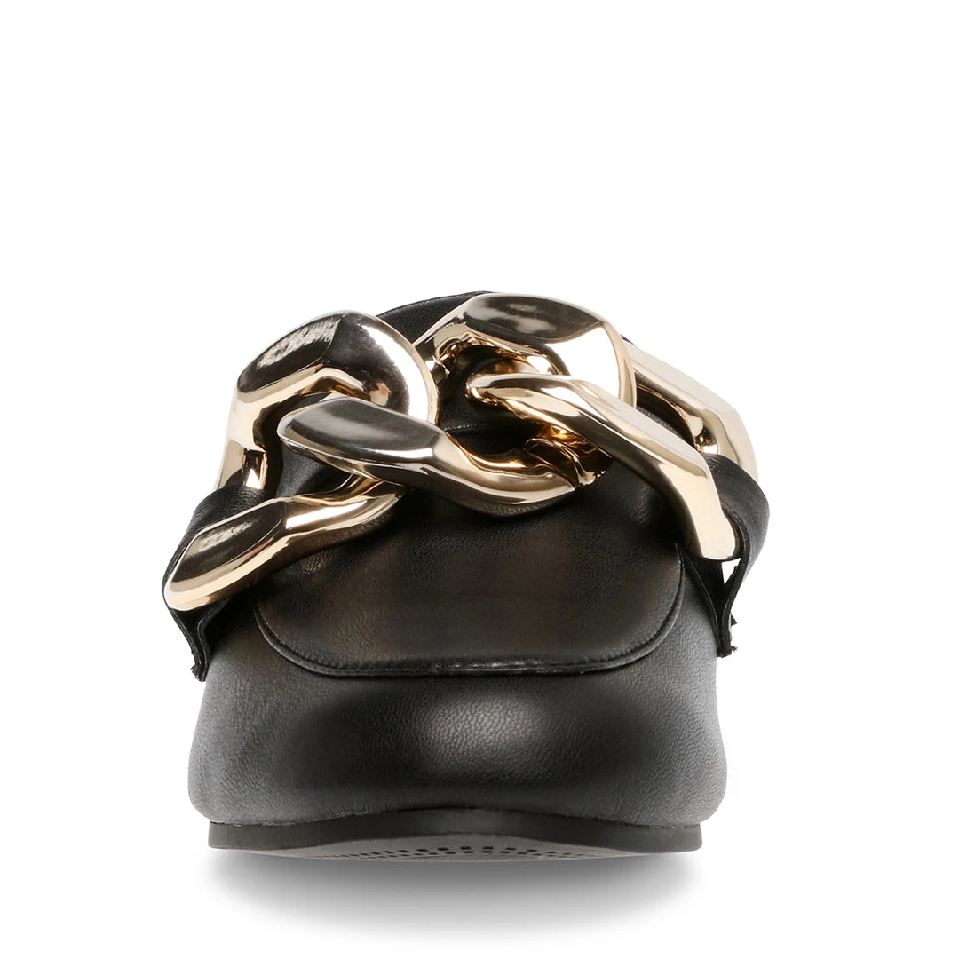 A gigantic chain link strap lends lighthearted luxury to this classic mule — a choice silhouette of the season and favorite of cool girls everywhere.