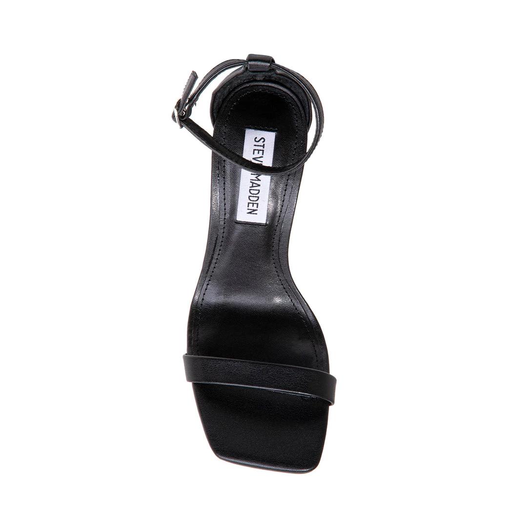 This chic open-toe stiletto sandal exudes a confident, feminine appeal. Thin, barely-there straps and a slender heel complete this look.