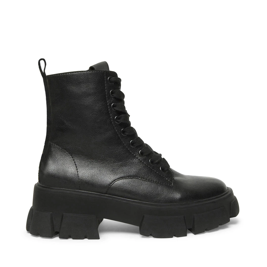 Toughen up this season with THORA — a new no-nonsense lace-up with a luxurious leather upper, chunky treaded sole and convenient inside zipper closure.
