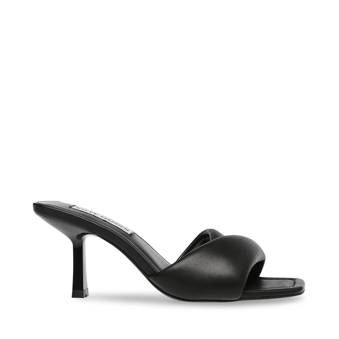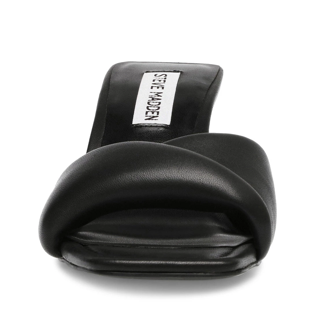 Prepare for warmer days ahead in THAI. A sleek slip-on mule gets a trendy upgrade with smooth puffy straps and a low architectural heel.