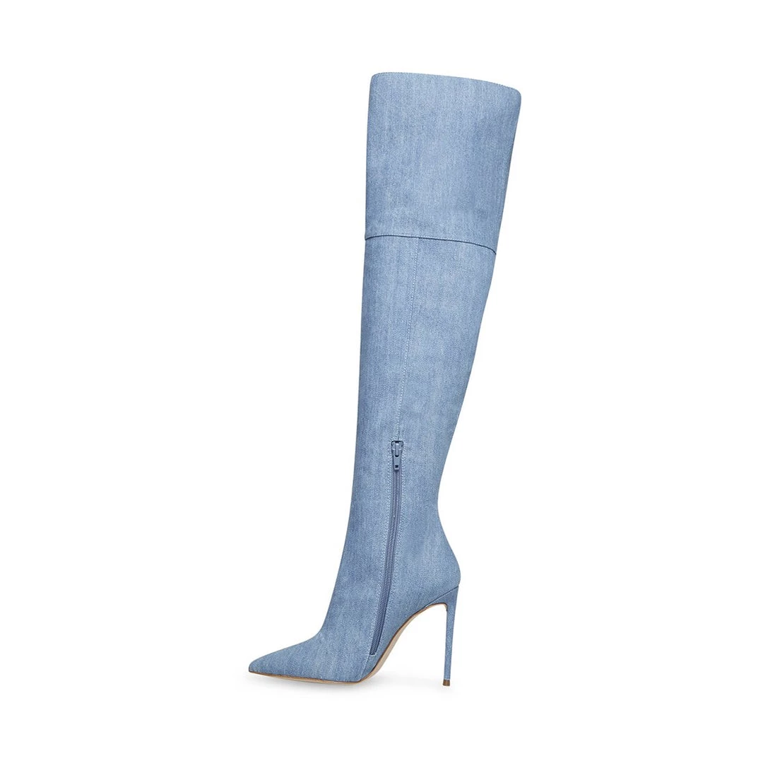 VAVA-voom! Casual denim surfaces relax this stilettoed boot for a look that’s sexy without trying too hard.