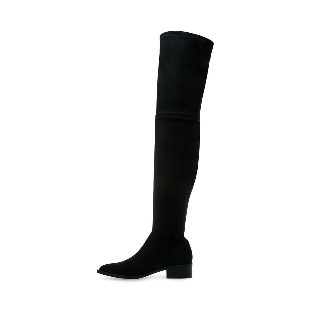 JODY makes a dramatic statement with an over-the-knee shaft, while the boot’s minimal detailing and modest heel ensure versatility and lasting comfort. Matte microsuede surfaces add tasteful texture.